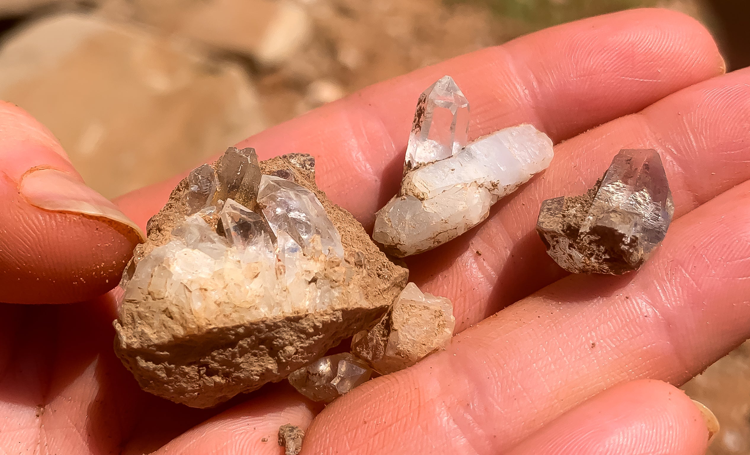 Some small quartz clusters we collected at Ron Coleman Mine in August of 2024!