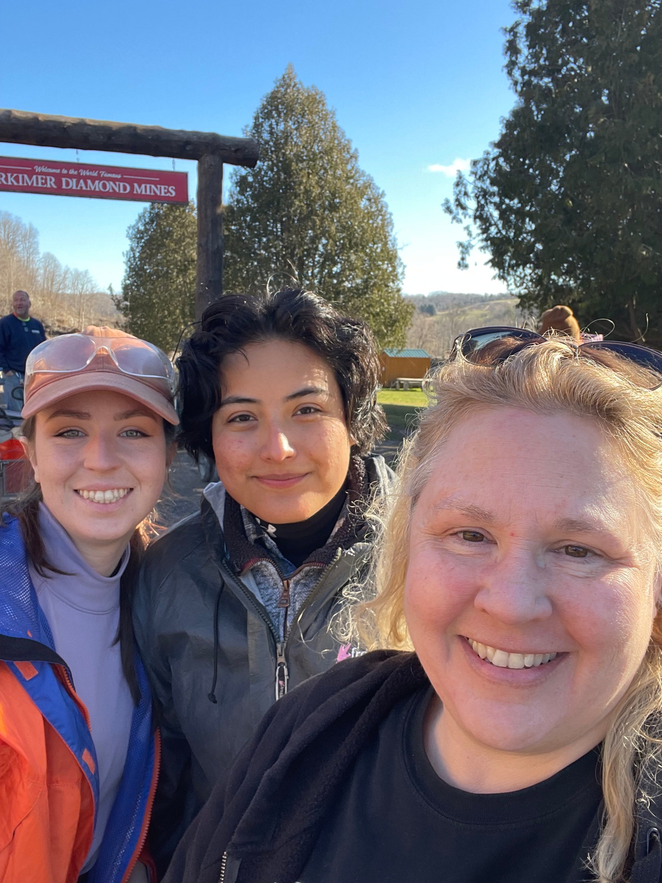 Jenna, Sam, and Jill waiting to enter the Herkimer Diamond Mine on a chilly April morning.