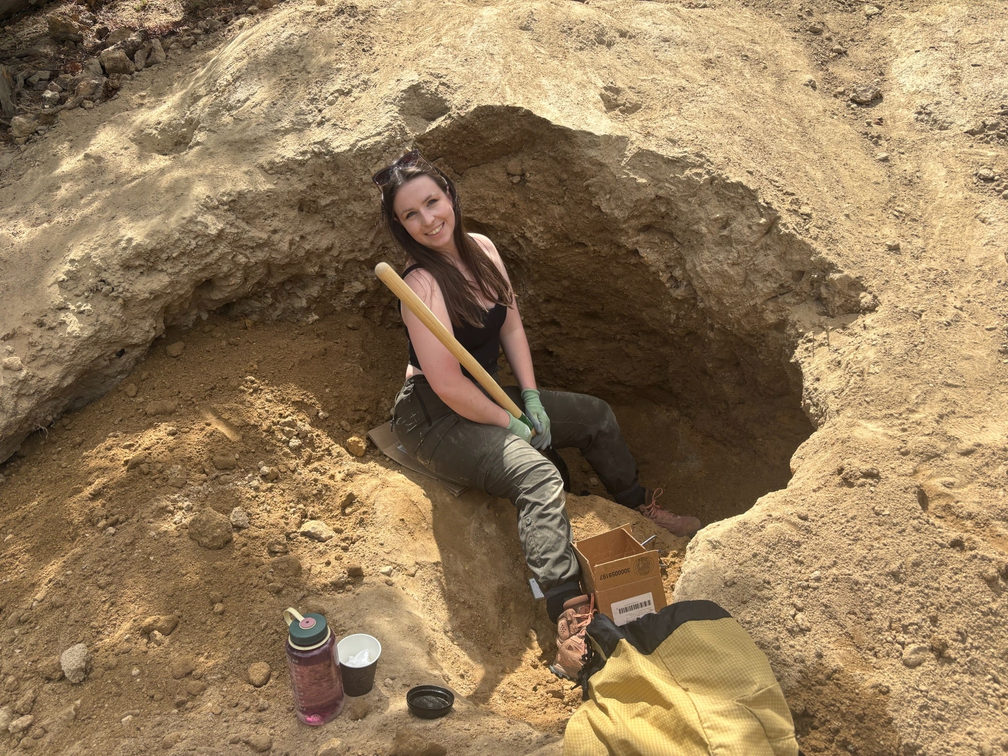 Sam in the tailings pile at Crystal Grove Mine. June 2022.