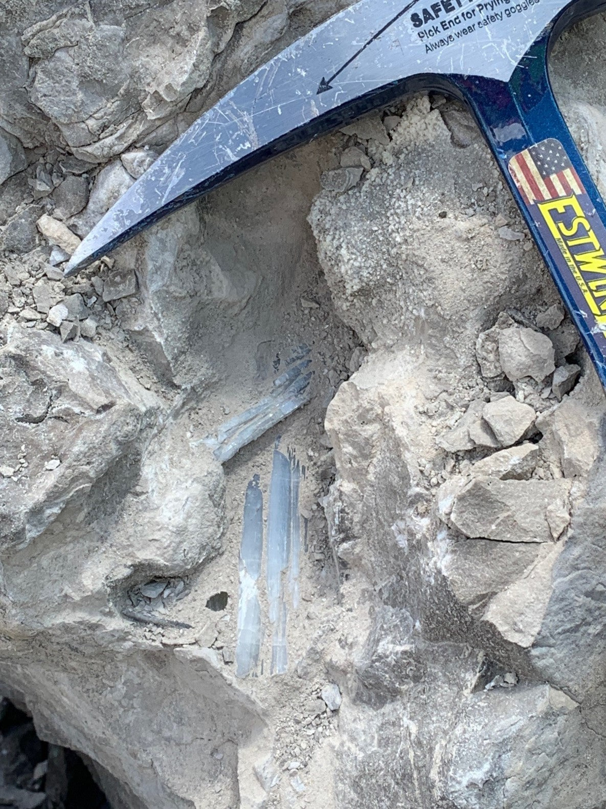 Celestine crystals in dolostone at Sylvania Minerals Quarry. November 2024.