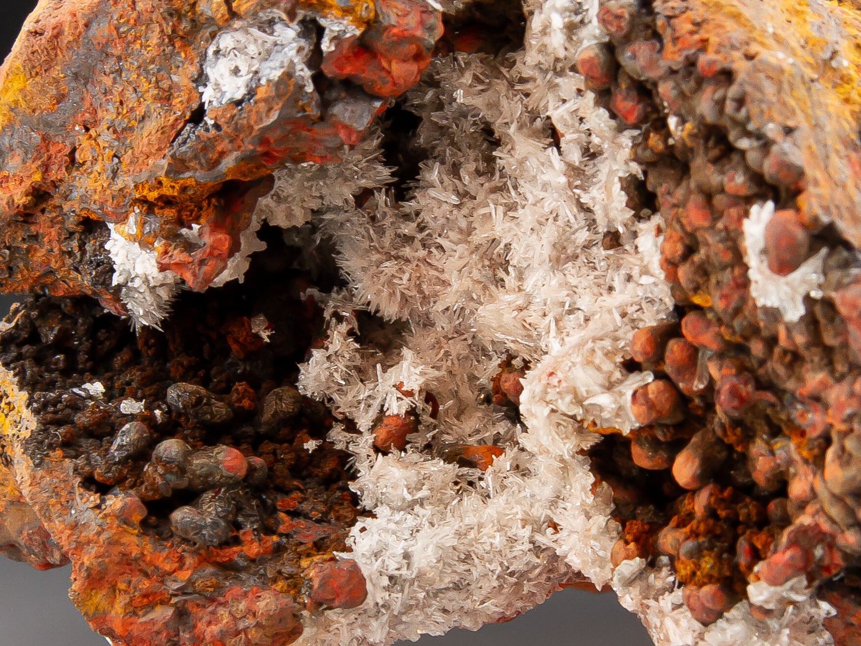 Stunning adamite and austinite mineral specimen featuring glittery crystals on botryoidal goethite. This specimen is from the locality of Gold Hill Mine in Utah, a major producer of gold, silver, arsenic and many other materials until the 1940s. 121.10 grams.