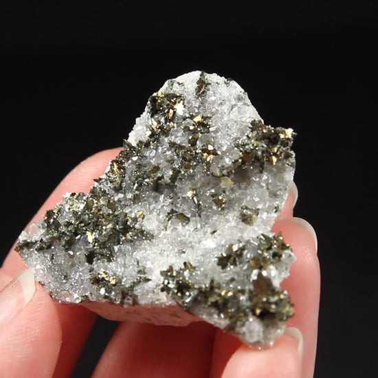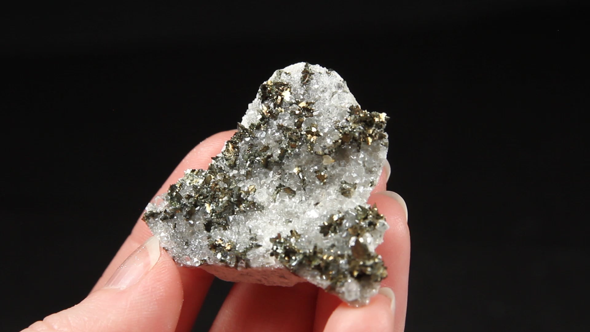 Vitreous calcite crystals with brassy-greenish marcasite. A lovely contrasting piece showcasing beautiful crystal forms and coloration. From the Linwood Mine in Scott County, Iowa.