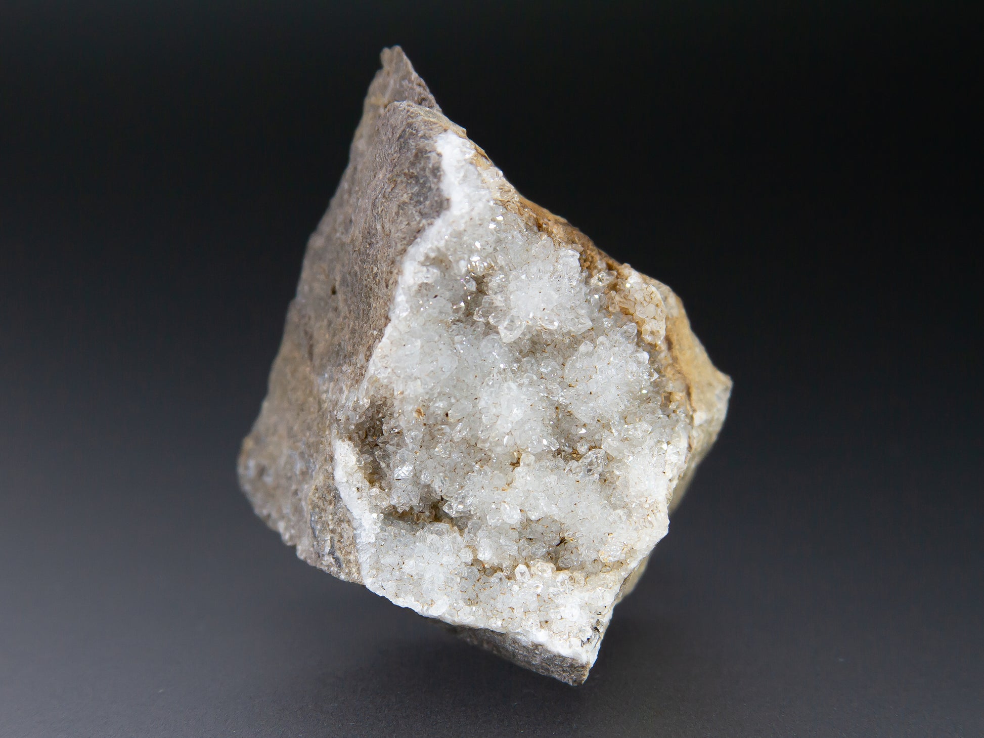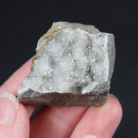 Glistening druzy quartz crystals on gray dolostone matrix from Ace of Diamonds Mine in New York. A lovely specimen from a famous (and now closed) mine. Perfect for a collection in need of some sparkle!