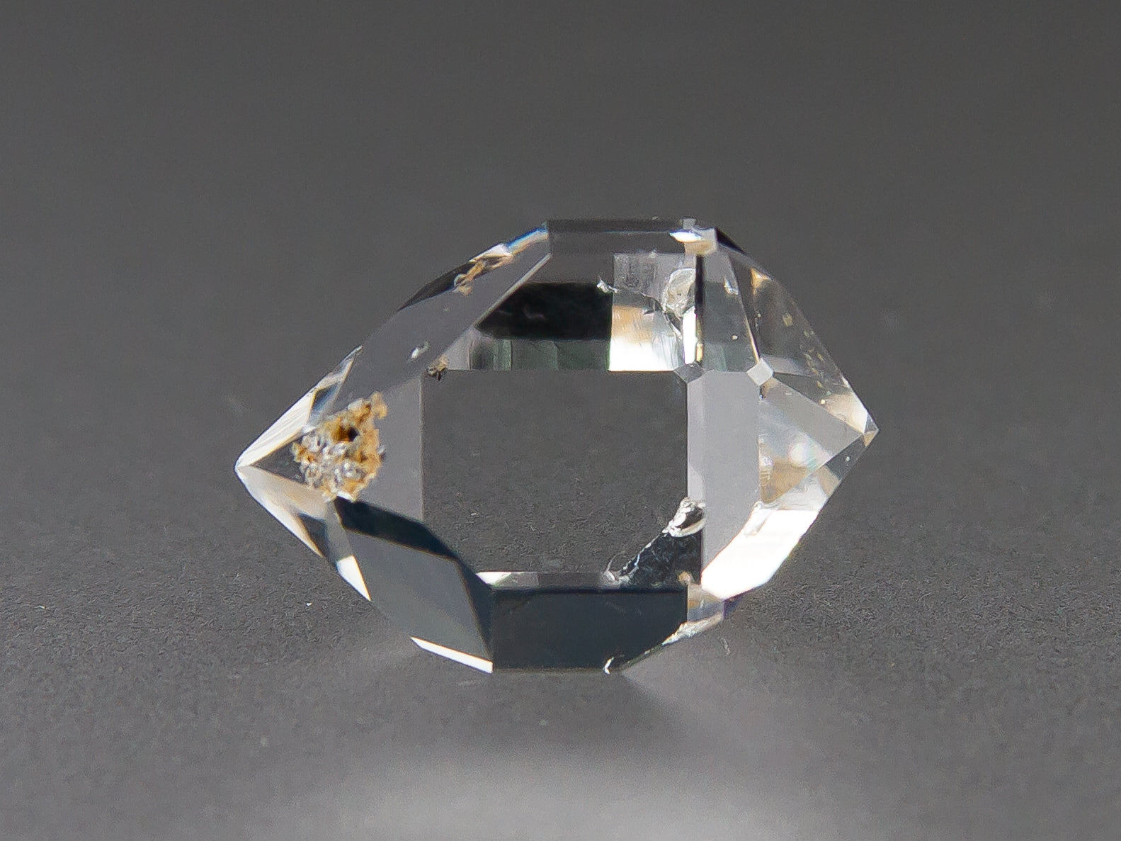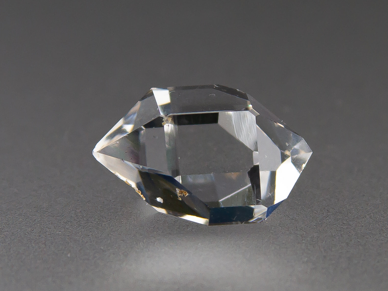 Stunning, high-grade Herkimer Diamond with incredible clarity and natural double terminated shape. Very small contact indents show where the crystal grew in contact with the host rock, the Little Falls dolostone.