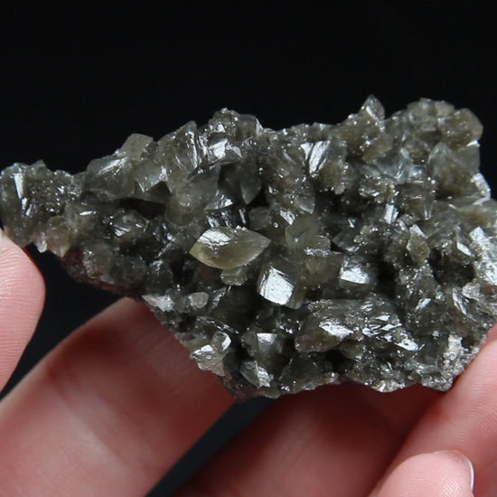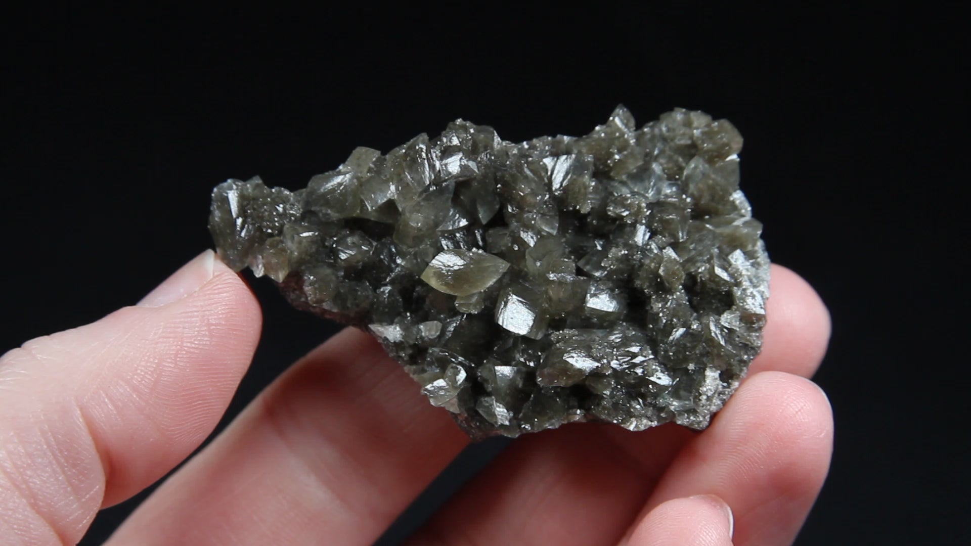 Deep brown calcite forming crisp rhombic crystals with a bright vitreous-to-waxy luster. The crystals are densely clustered with good definition along edges and terminations, giving the piece a textured, three-dimensional surface. From the Sylvania Minerals Quarry, Monroe County, Michigan—an appealing Midwest locality example that shows the classic rhombic habit and rich color.