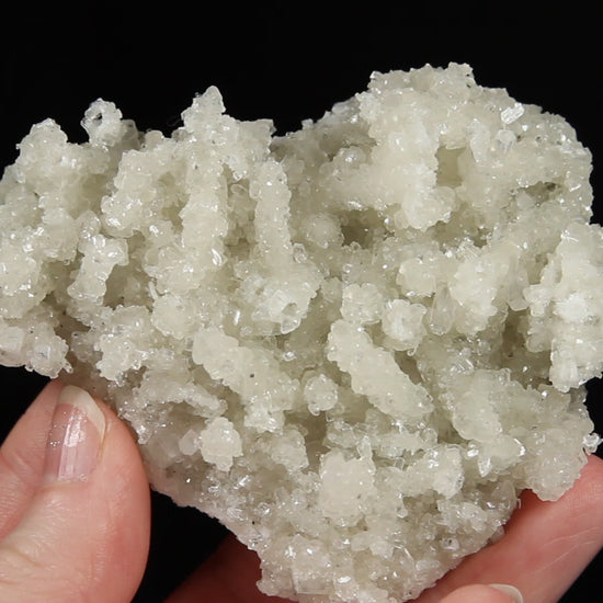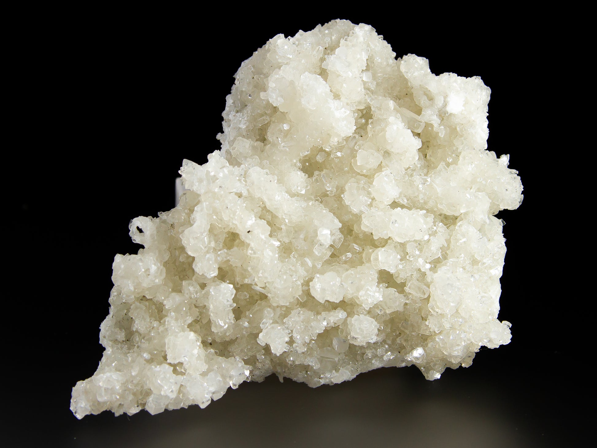 A dramatic pseudomorph replacement featuring lustrous apophyllite crystals that have completely replaced the original laumontite structure, preserving its crystal form. The specimen displays complex aggregates of translucent to white apophyllite with excellent luster, creating a sparkling display across countless crystal faces. An excellent example of Indian zeolite locality mineralogy and complete pseudomorphic replacement, displaying well from multiple angles with strong three-dimensional development.